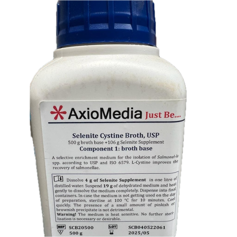 Selenite Cystine Broth is a medium used for the selective enrichment of Salmonella spp. from food, dairy products, water and other materials of health importance and for sludge characterization.